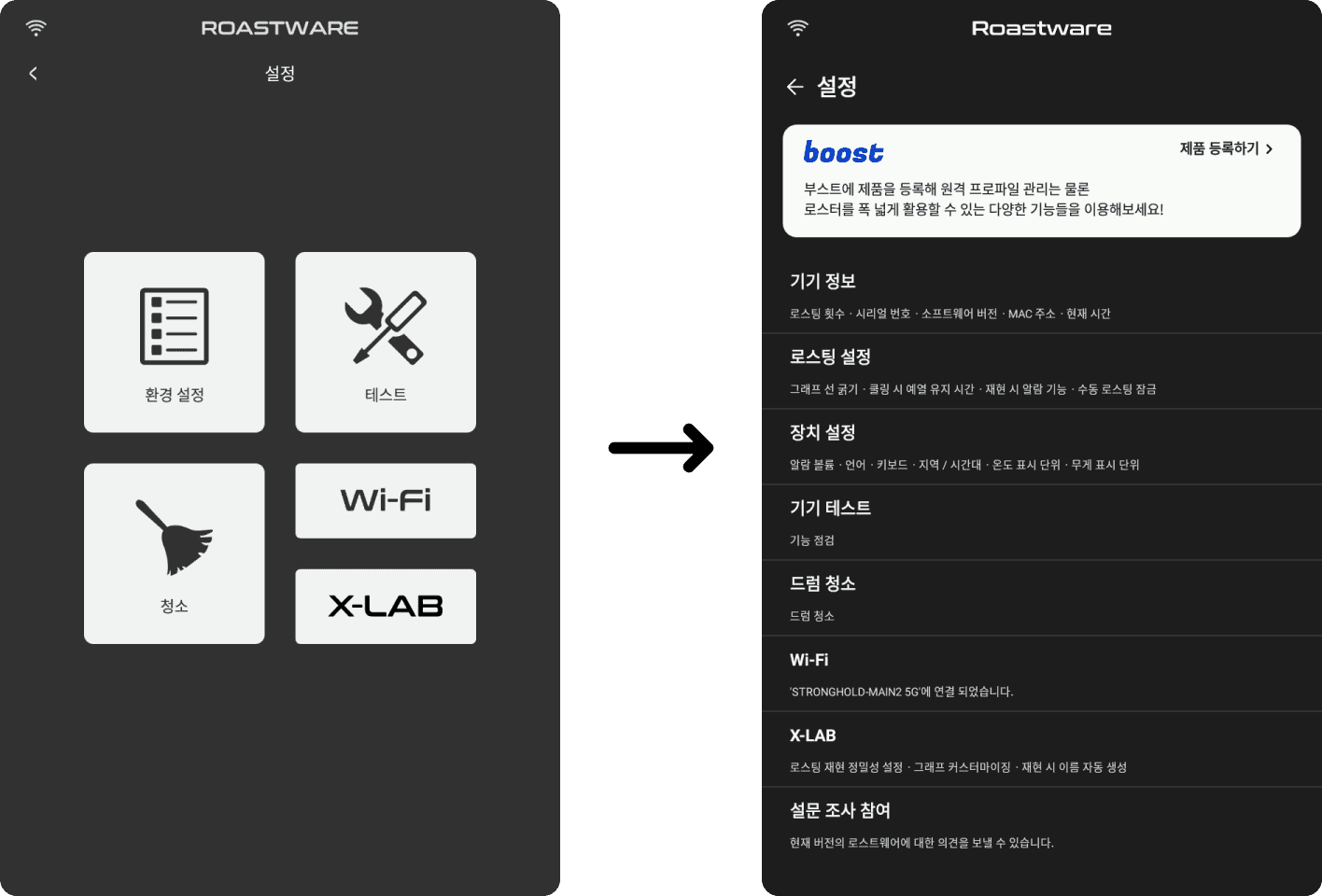 로스트웨어의 전체적인 화면 디자인과, 일부 UI가 더 직관적으로 변경되었습니다. 홈 화면에서의 즐겨찾기를 통한 빠른 재현과 참조가 가능해졌으며, 설정 화면에서 원하는 기능을 빠르게 찾을 수 있게 되었습니다.
