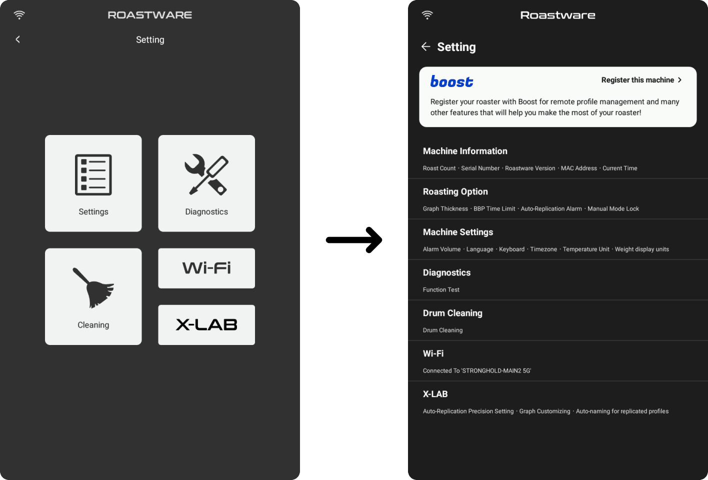 You can now register your Roaster to Boost, Stronghold’s new smart roasting platform. Once registered, you can manage your Profiles, inventory, and more — all in one place.